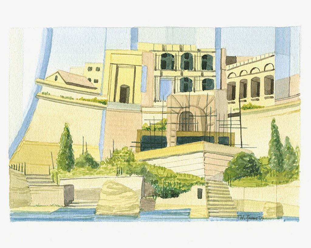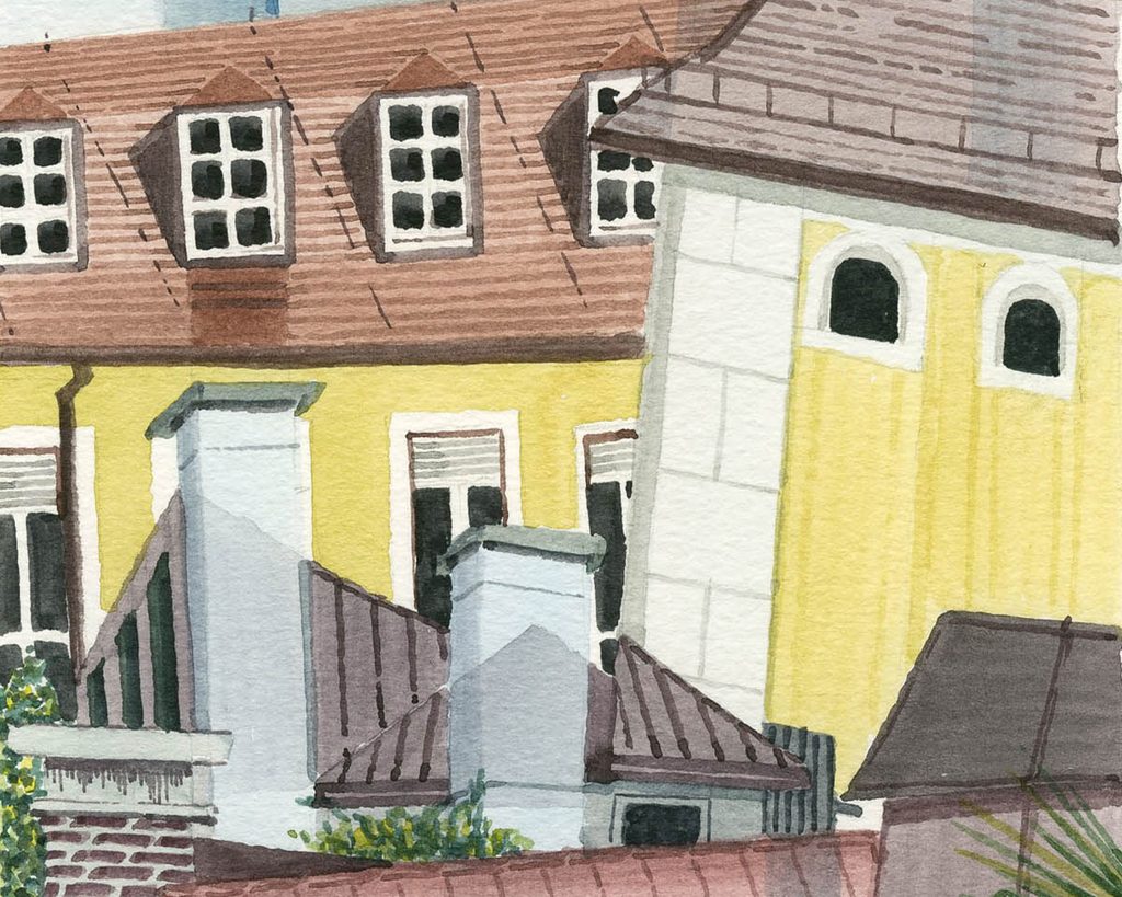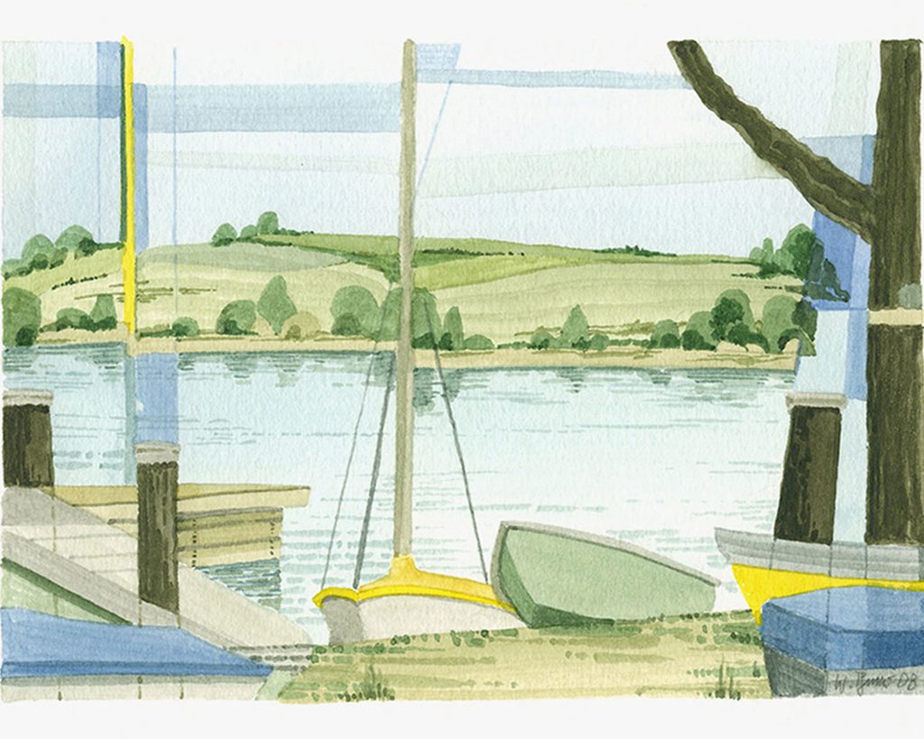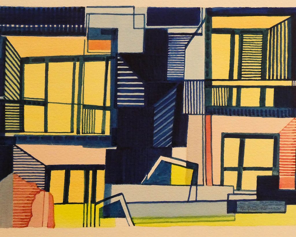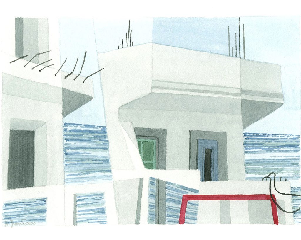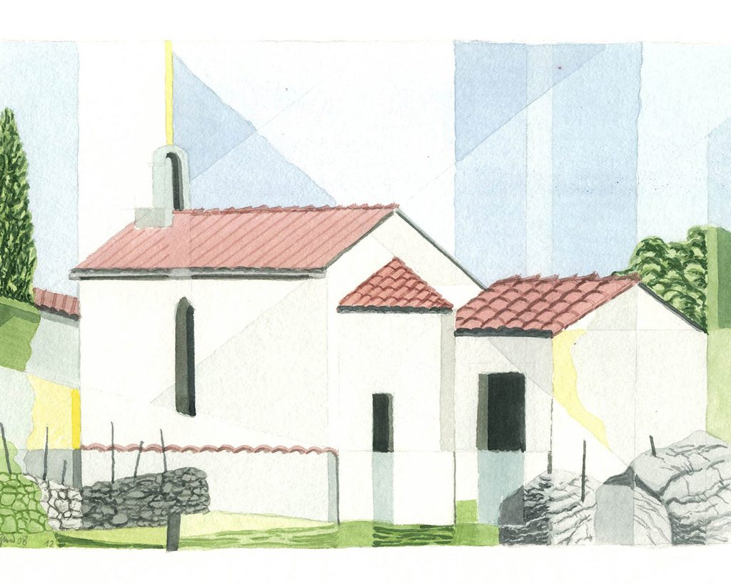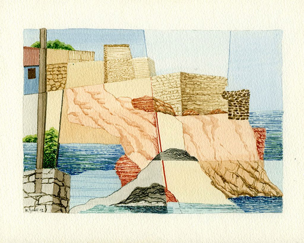 Diese Tatsache kann als Gestaltungsprinzip für die Aquarelle bezeichnet werden: Gesehenes wird unmittelbar vor Ort in eine bildnerische Struktur überführt, die sich aber nicht als topografische Wiedergabe des Außen versteht, sondern vielmehr als Anregung einer Neukonstruktion des Augenreizes.
